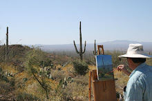 This painting was done when my nephew Dan Perkins and I went out painting together during his visit at Christmas. We managed to get two paintings done during his visit. Here we were driving to go into the Saguaro National Park and before we got to the entrance we saw this magnificent view and parked the car on the side of the road and began to paint.